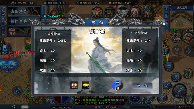 3、仙魔修炼:消耗修炼丹和元宝即可修习,每一阶都可以获得攻魔道和攻击属性。