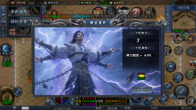 2、转生晋升:消耗元宝即可提升转生等级,每一级都能获得神力倍攻属性。